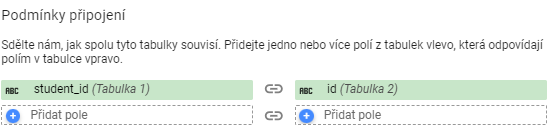 K propojení tabulek je nezbytné nadefinování podmínek připojení. V těchto podmínkách se určuje, jak se jednotlivé tabulky spojují a jakým způsobem spolu souvisejí.