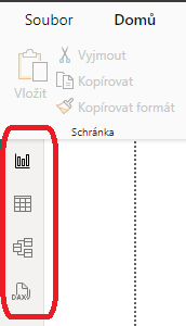 K vytvoření nebo změně vizualizace vyberte v podokně Vizualizace ikonu pro vytvoření vizualizace. Pokud již na plátně reportu máte vybranou nějakou vizualizaci, změní se na typ, který jste vybrali. Pokud na plátně není vybrána žádná vizualizace, vytvoří se nová vizualizace na základě vašeho výběru.
