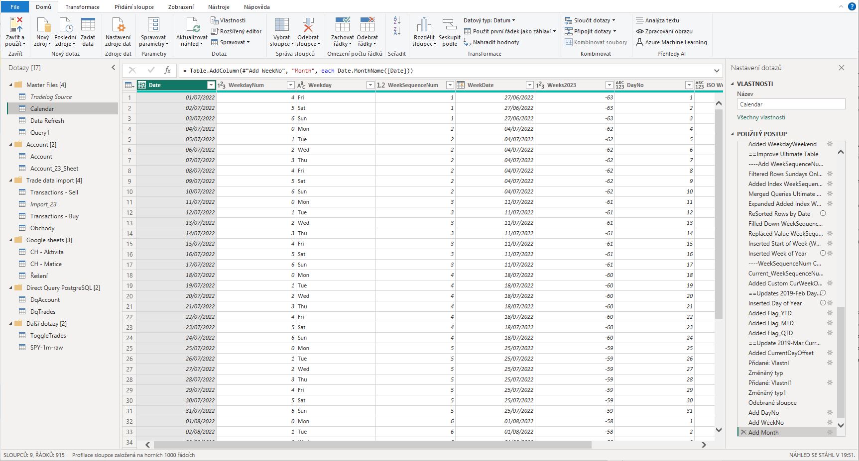 V Power BI Desktopu můžete čistit a transformovat data pomocí vestavěného editoru Power Query. V horní liště zvolíte "Transformovat data" pro otevření Power Query, které vám umožňuje provádět změny ve vašich datech, jako je změna typu dat, odstranění sloupců nebo kombinování dat z více zdrojů. Je to podobné sochaření: začnete s velkým blokem hlíny (nebo dat) a postupně odebíráte části nebo přidáváte další, dokud není tvar dat přesně takový, jaký chcete.